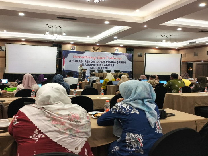 Pekanbaru Pengeran Hotel - Plt. Kasubbag Kuangan Dinas Perumahan Rakyat dan Kawasan Permukiman Rakyat Kabupaten Kampar RADHES PRAYOGA KOSWARA, SE didampingi KHAIRIL FADLI. DS, SE, RAFIKA NADA RIZKI, S.Pd dan ARIEF RAHMAN selaku Admin Dinas mengikuti Kegiatan Monitoring dan Evaluasi Aplikasi Rekonsiliasi Iuran Pemda (ARIP) yang ditaja oleh BPJS Kesehatan di Ball Room Pengeran Hotel Pekanbaru (3/7/2025).